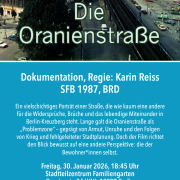 Mit der Dokumentation „Die Oranienstraße“ (43 Minuten) zeigt der Sender Freies Berlin 1987 ein vielschichtiges Porträt einer Straße, die wie kaum eine andere für die Widersprüche, Brüche und das lebendige Miteinander in Berlin-Kreuzberg steht. Lange galt die Oranienstraße als „Problemzone“ – geprägt von Armut, Unruhe und den Folgen von Krieg und fehlgeleiteter Stadtplanung. Doch der Film richtet den Blick bewusst auf eine andere Perspektive: die der Bewohner*innen selbst.