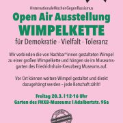 Open Air Ausstellungseröffnung: WIMPELKETTE #InternationaleWochenGegenRassismus am Freitag, 20.3. um 12 Uhr in der Adalbertstr. 95a