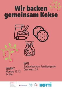 Wir backen gemeinsam Kekse Kalender Wann: 15. Dezember 2025 um 14:00 – 16:00 2025-12-15T14:00:00+01:00 2025-12-15T16:00:00+01:00 Wo: Familiengarten https://kotti-berlin.de/wp-content/uploads/2021/08/kotti-logo-blau.png 0 0 monique https://kotti-berlin.de/wp-content/uploads/2021/08/kotti-logo-blau.png monique2025-11-27 11:30:112025-11-27 11:32:52Wir backen gemeinsam Kekse