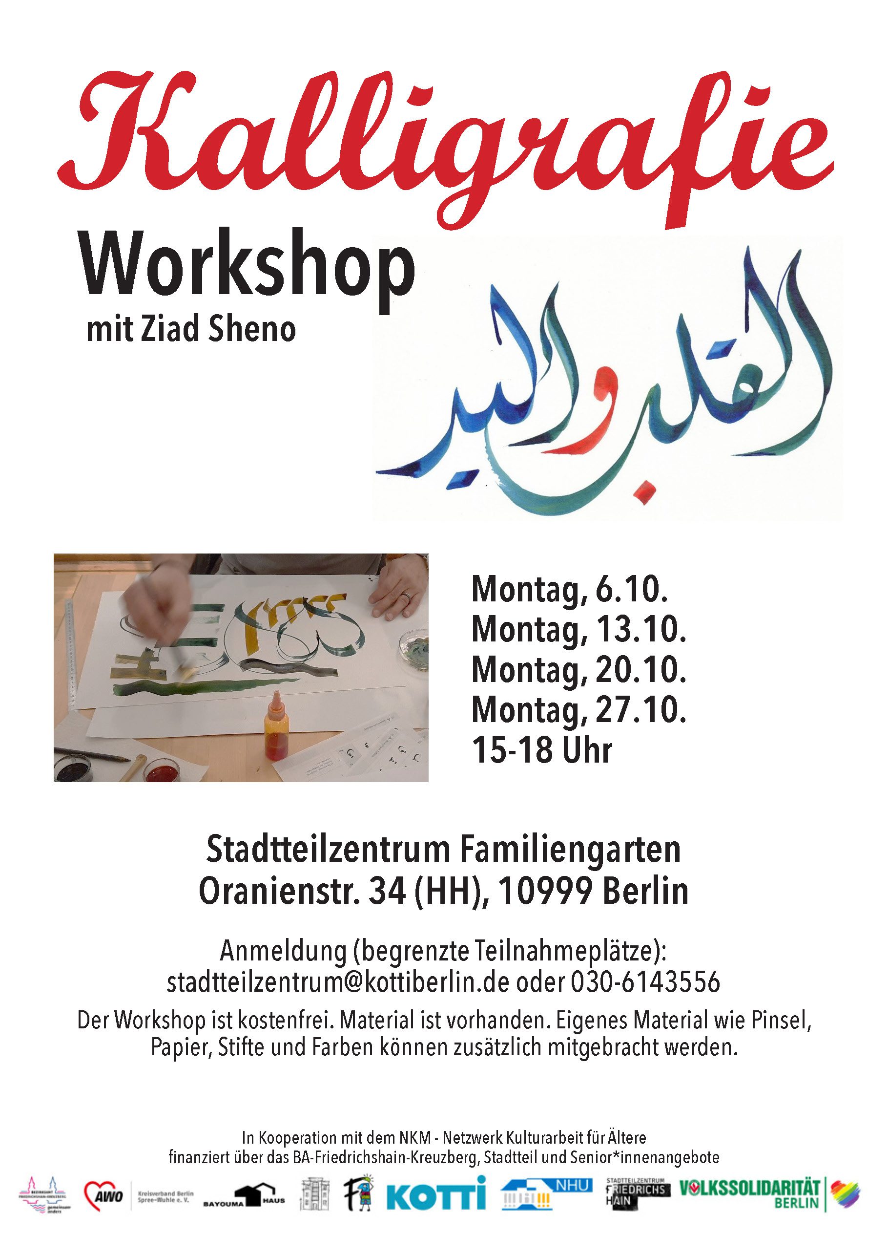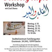 - Kalligrafie Workshop am 6.10., 13.10., 20.10. & 27.10. um 15-18 Uhr im Familiengarten
