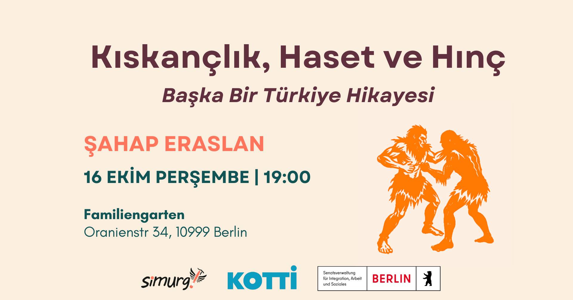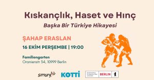 - Simurg Berlin e.V.: Kıskançlık Haset ve Hınç - Başka Bir Türkiye Hikayesi am 16.10. um 19 Uhr im Familiengarten